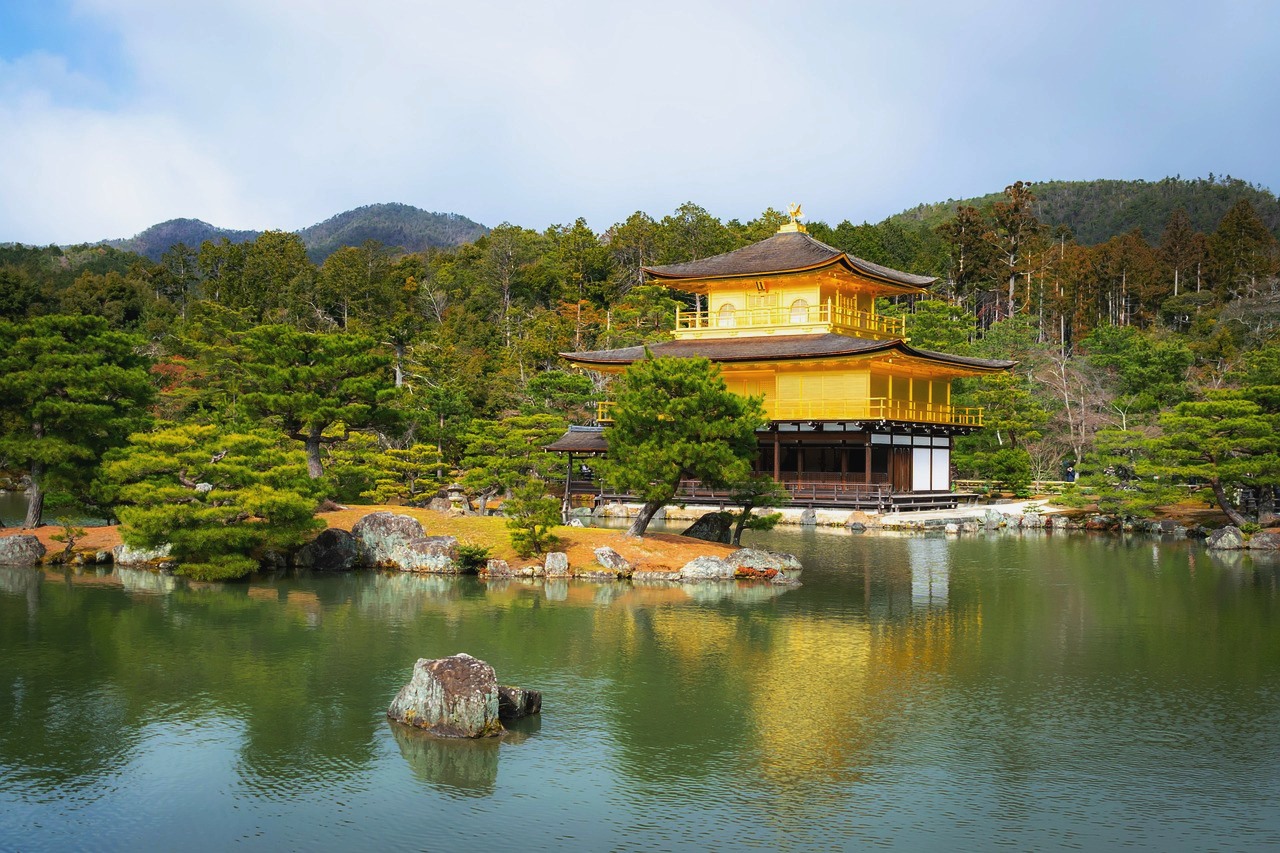 Kinkakuji – Złoty Pawilon – Wizyta w świątyni Kinkaku-ji, znanej jako Złoty Pawilon, jednym z najbardziej rozpoznawalnych zabytków Kioto. Pokryty złotymi płatkami pawilon odbijający się w tafli stawu oraz starannie zaprojektowany gród tworzą harmonijną i niezwykle malowniczą scenerię.